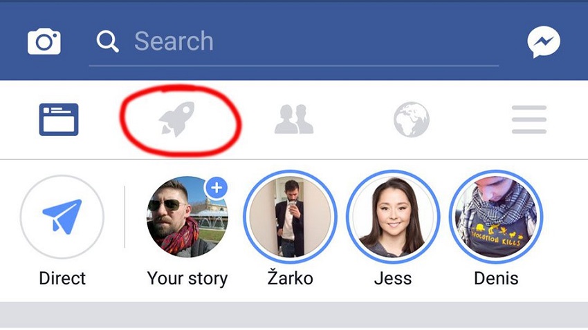 Rakieta została umieszczona pomiędzy ikonami znajomych i głównego kanału aktualności. Naciśnięcie na nią prowadzi nas do nowego news feeda, w którym nie zobaczymy prawie żadnych postów znajomych. Zamiast tego umieszczono tam ciekawą zawartość ze stron, których jeszcze nie polubiliśmy, dobieraną do naszych upodobań według obecnych zainteresowań. W alternatywnym kanale aktualności pojawiły się także posty popularne w pobliżu lokalizacji użytkownika.